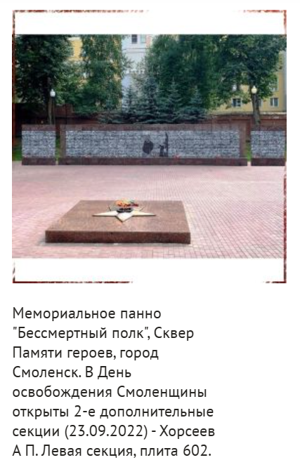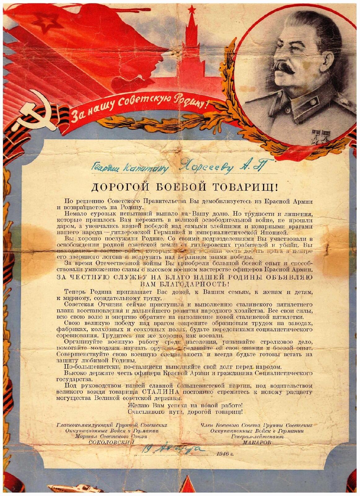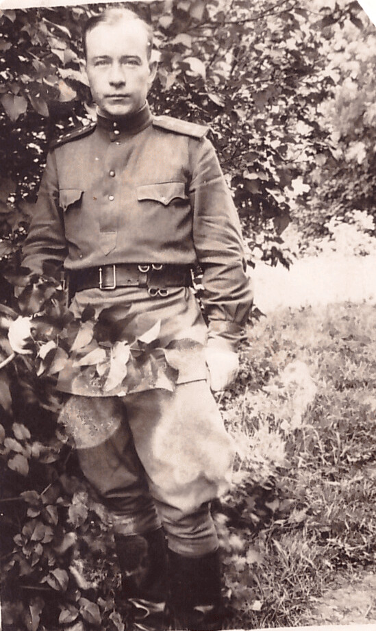 Был призван в Красную Армию в 1939 году. Служил в Бресте: 204 гаубичный артиллерийский полк 6 стрелковой дивизия - курсант полковой школы 204 гап, командир отделения 204 гап, старшина батареи. Демобилизации помешала война. Первый бой принял на рассвете 22 июня 1941 года. Участник боев в районе города Бреста (Западный фронт). 204 гап в составе 6 сд Западного и Центрального фронтов существовал по 04.09.1941, затем стал 497 артиллерийским полком 269 стрелковой дивизии Брянского фронта. Дошел до Берлина (Брянский фронт, 1-й Белорусский фронт). От рядового до офицера (войну окончил в звании гв. капитана 4 отделения штаба 5 артиллерийской дивизии прорыва). Боевые награды: орден и 3 медали (награды вручены, орденская книжка № 765379). Отслужив в Военной Администрации г. Берлина (Группа советских войск в Германии) в 1948 году вернулся на родину. Занялся мирным трудом. Вырастил с женой 4-х детей, дождался внуков и старших правнуков. Прожил 93 года. С воинскими почестями и доброй памятью родных и земляков похоронен в родной деревне на Смоленщине.