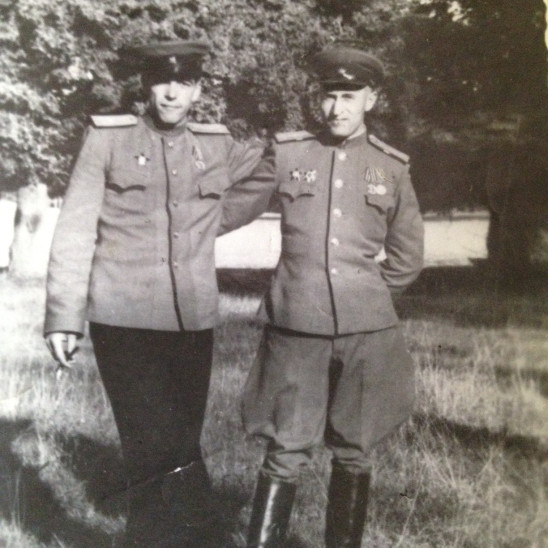 на которой он стоит со своим фронтовым другом Благовым Михаил Давидовичем (