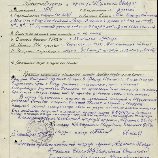 Боевой путь ветерана Мой дедушка Ямщиков Федор Иванович прошел всю войну и был ранен и контужен, а после войны он еще воевал на Японской войне. Он рассказывал про то как он воевал, но сейчас уже не все вспомнить, но мы гордимся нашим дедом и будем помнить всегда о его подвигах.