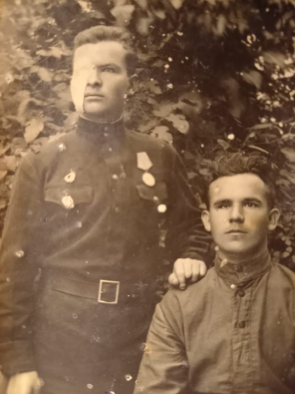 Мой дед уроженец Омской области., Черлакского р-на, село Народное. Место призыва Черлакский РВК, Омская обл., Черлакский р-н Воинское звание сержант ; ст. сержант Воинская часть 844 стрелковый полк 267 стрелковой дивизии (I) 34 гвардейская стрелковая дивизия Награды Медаль «За отвагу» (2) Место выбытия Калмыцкая АССР, Черноземельский улус, д. Яшкуль- с 1942 г. числился пропавшим без вести. На самом деле получил тяжелое ранение головы, попал сначала в госпиталь в Крыму, а затем был эвакуирован с госпиталем в Узбекистан, где проходил длительное лечение, потерял глаз, пальцы рук, всю последующую жизнь жил обрабатывая рану на лице, ходил с кожаной повязкой. Прожил долгую и счастливую жизнь. Воспитал троих детей. Ушел из жизни 29.12.1981 г., упокоен в своем родном селе Народное черлакского района Омской области.