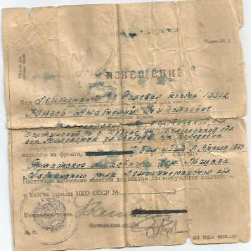 Анатолий Николаевич родился в 1923 году в деревне Капово Вологодской области.Был призван на фронт Вологодским областным РВК.Был убит в боевой операции 9 апреля 1943 года. Похоронен на Братском кладбище в д. Мщага Мстинского р-на, Ленинградской области