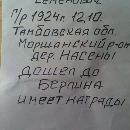 Место рождения: Тамбовская обл. Моршанский район. Деревня Насены