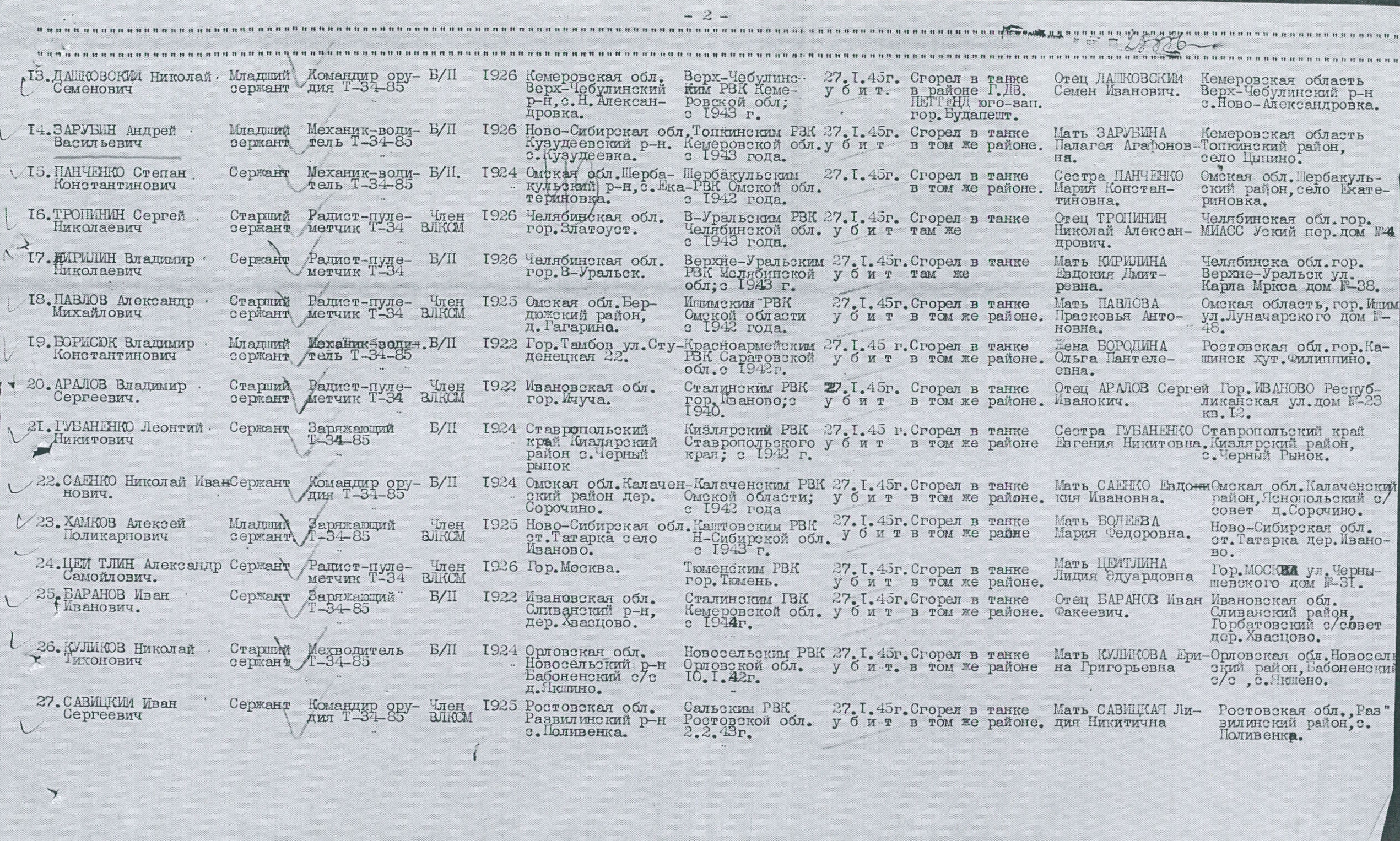 Т-34-85. 27.01.1945 года сгорел в танке в