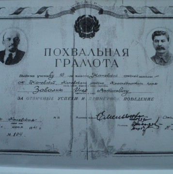 Мой прадед, Илья Антонович Завалий, родился 28 июля 1923 года в станице Каневской Краснодарского края. Пережил голодомор 1932-1933 года. В школьные годы на каникулах работал в колхозе «Красный колос».