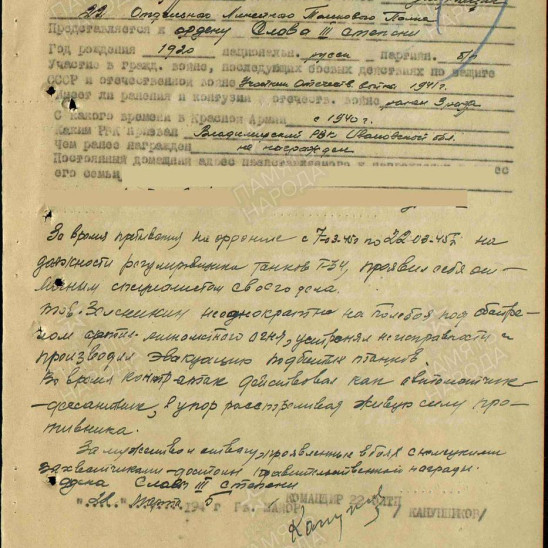 Будучи школьником выучился трактористом и работал в совхозе ульяновец. В 38 году начали проводить электричество по месту жительству, в связи с чем решил поехать учиться в Ивановскую область чтобы стать электриком. Мечтал после учебы приехать в родную деревню. В 40 году был призван в ряды Красной армии. Сразу попал в танковые войска так как имел специальность тракториста. С первых дней войны оказался на фронте, ремонтировал танки и проводил эвакуацию подбитых танков с поля боя. Любил семью, писал домой письма. Трижды был ранен, лежал в госпиталях, после чего возвращался на службу. За время войны учавствовал в обороне украинских городов, под Одессой был ранен, там же был на излечении. Также учавствовал в освобождении Молдавии. Прошелся по территории Румынии, Словакии и Венгрии. Победу встретил в Австрии.