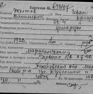 С 3 июля 1942 г. числился пропавшим без вести, но в тот момент Иван Васильевич находился в Севастопольском госпитале с осколочным ранением. Нашёлся! Жив!