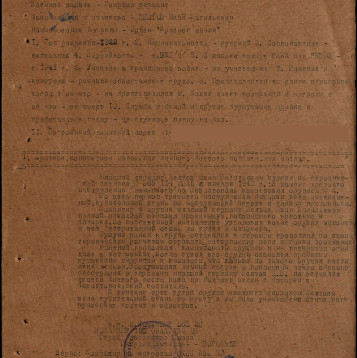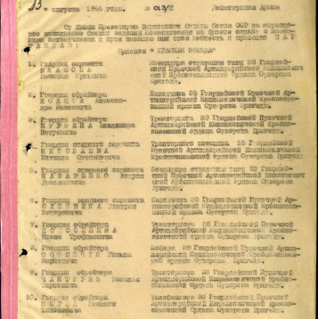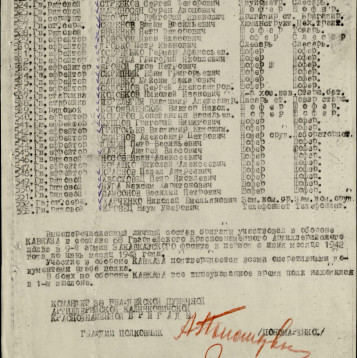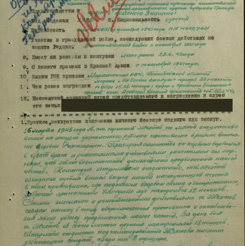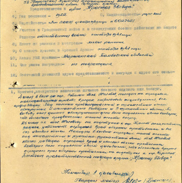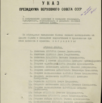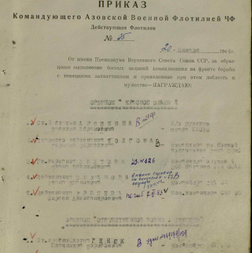 20.01.1944 г. – Орден Красного Знамени. Даты подвига 01.06.1942-30.06.1942