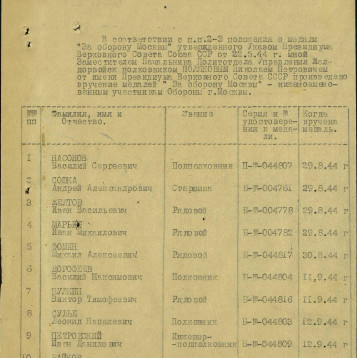 29.08.1944 г. – Медаль «За оборону Москвы»
