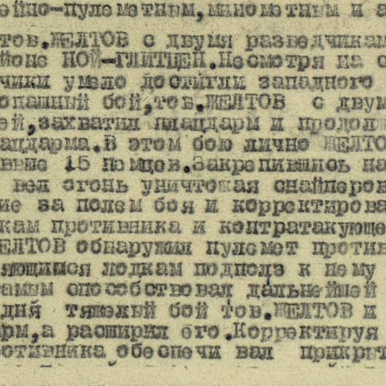 Желтов Иван Васильевич родился в селе Васильево Пичаевского района Тамбовской области в 1922 году. Он был призван на защиту Родины в сентябре 1941 года в возрасте 19 лет. Начал службу в звании младший сержант, прошёл всю войну, получил должность командира отделения разведки 38 Гвардейской пушечной артиллерийской бригады.