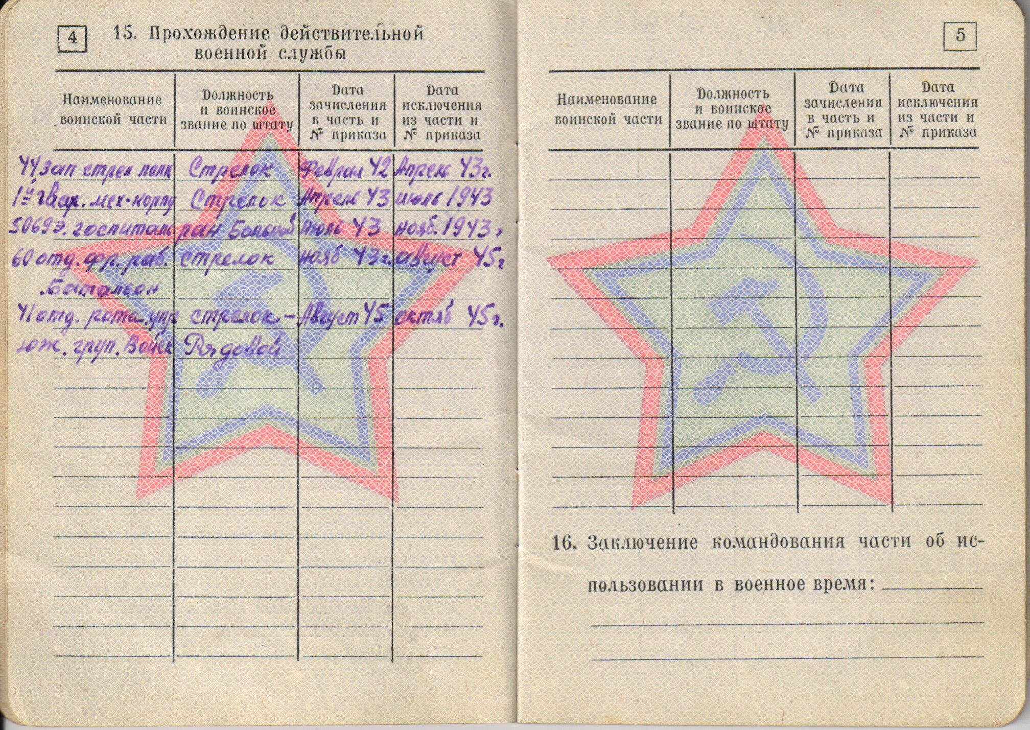 В 1942 г. окончил среднюю школу и сразу был призван в Армию. В июле 1943 ранен, находился в госпитале. Продолжил службу в нестроевой. Победу встретил в Венгрии. Демобилизован в октябре 1945 г.