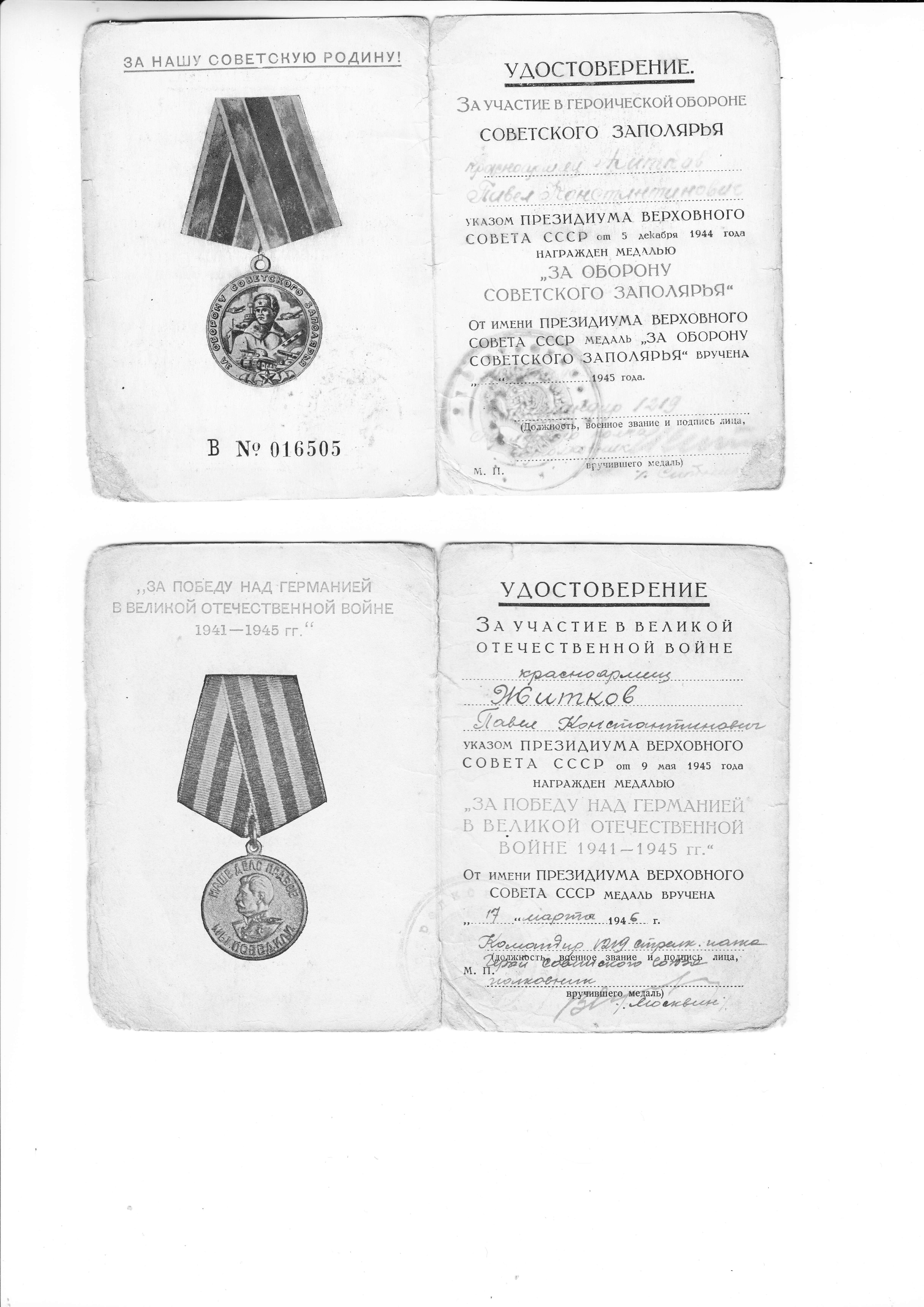 Правительственные награды: медаль «За оборону Советского Заполярья», медаль «За