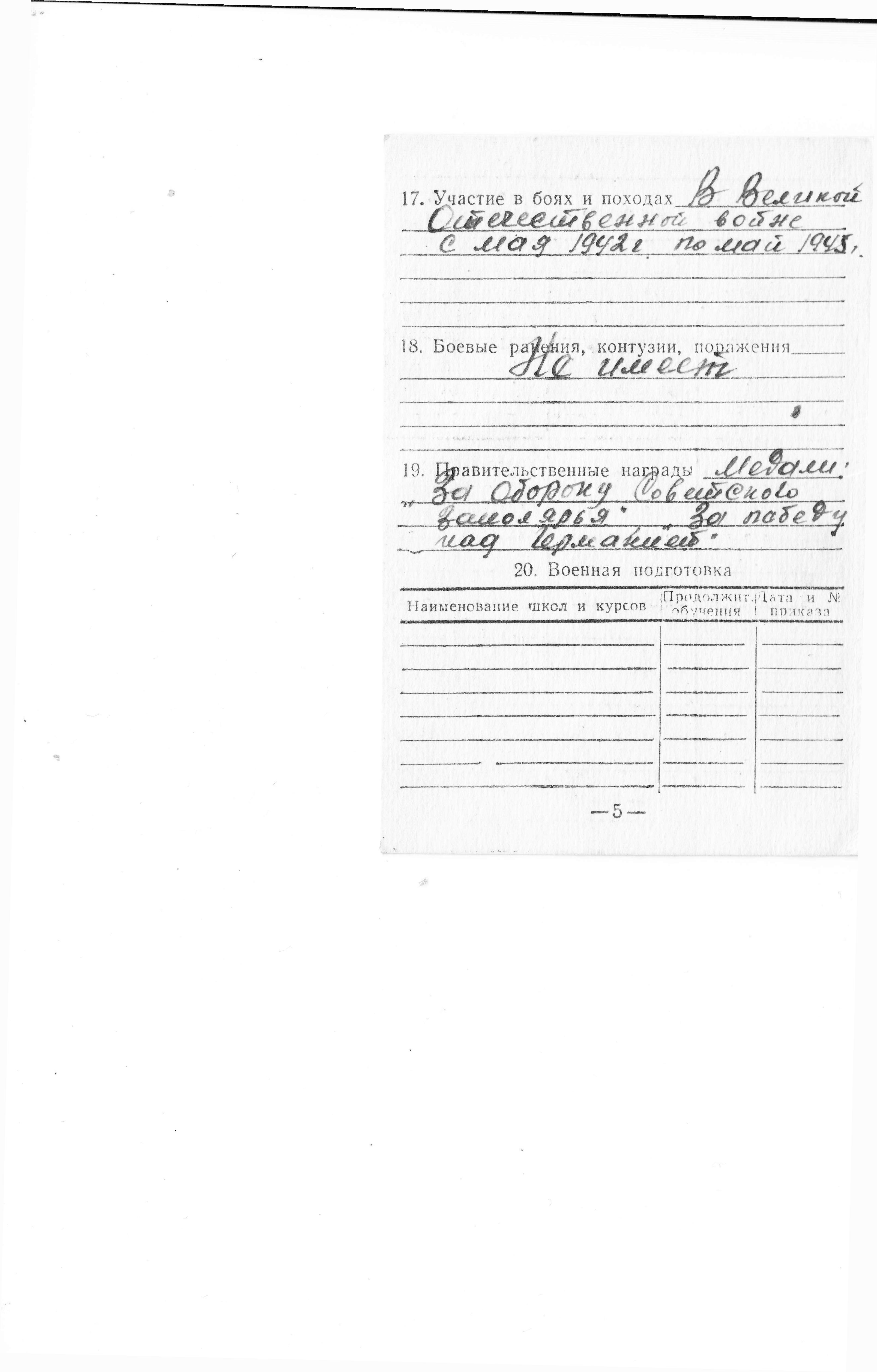 Отечественной Войне с 1942 по 1945 годы в звании рядовой. Имеет