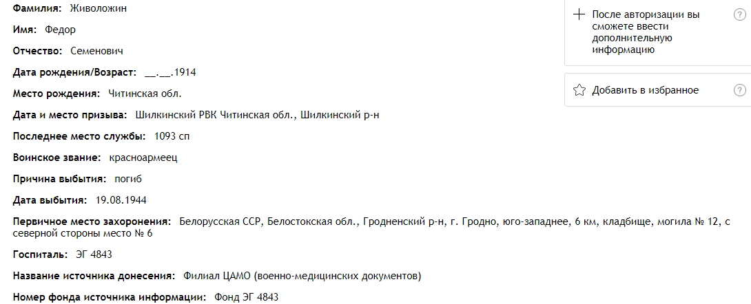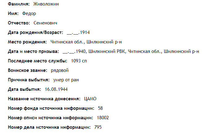 Место рождения: Читинская область