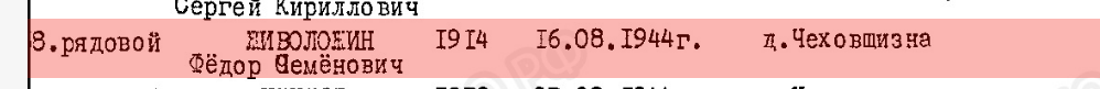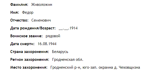 место смерти: д.Чеховщизна