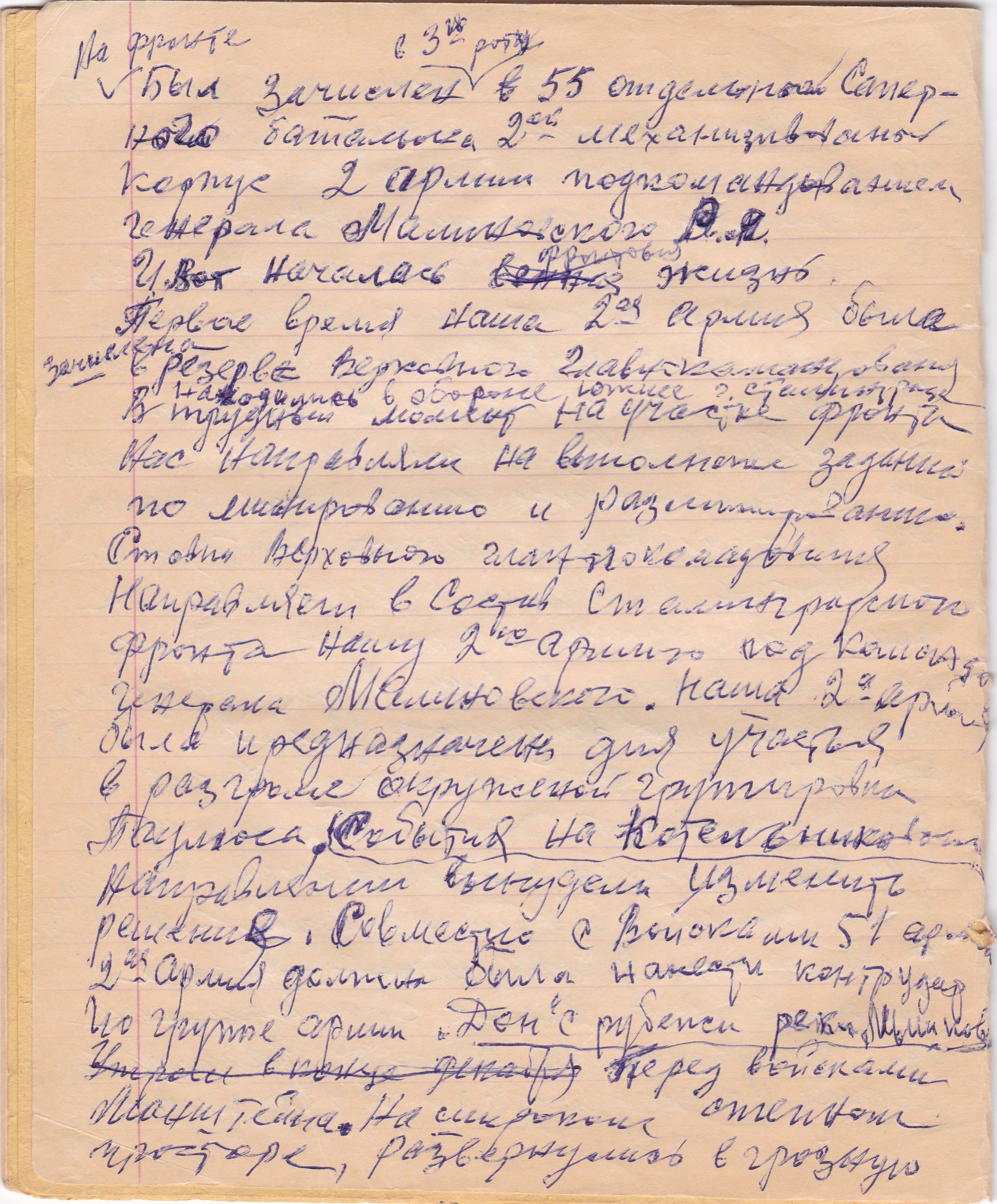 С июля 1942 по май 1945,был сапером.Во время войны получил ранения в руку и плечо.Имеются личные записи..
