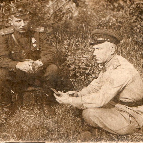 беременной женой Раисой Петровной и дочерью Галей, отправляется на фронт.С 1 941- 1945 годах служил парторгом 13- го ЗАД