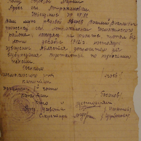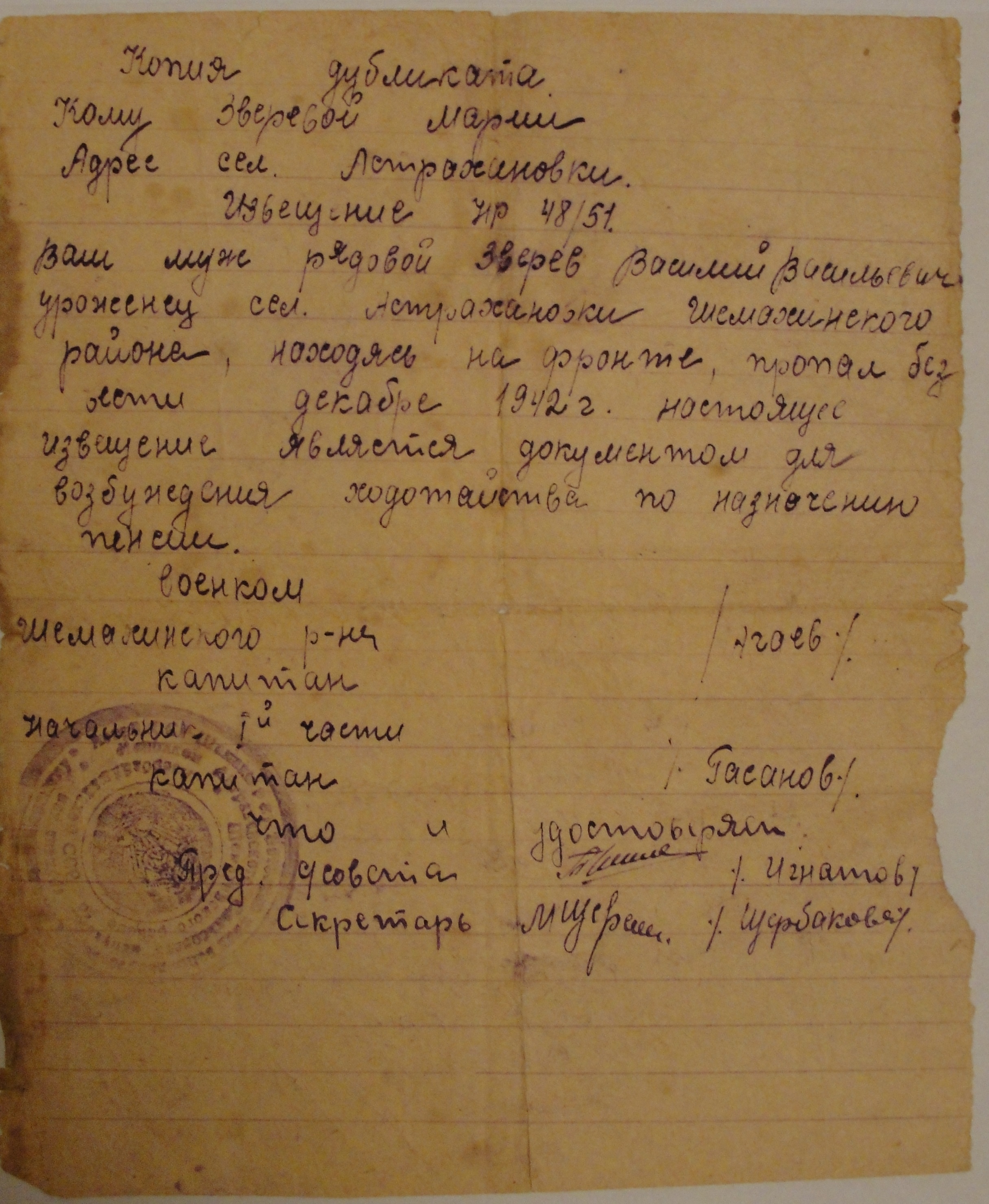 Москвой. Факт гибели Василия известен благодаря брату .Михаил осенью 1942 года был тяжело ранен в руку. После