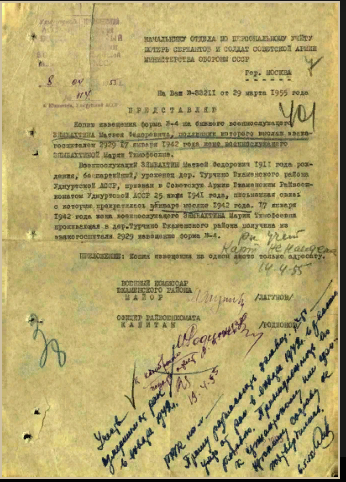 Зямбахтин Матвей Фёдорович, 1911 года рождения, родился в деревне Турчино, Юкаменского района, Удмуртской Республики. В семье детей было шестеро - четыре брата и две сестры. Все четыре брата были призваны на военную службу. Матвей Фёдорович - родной брат моего прадеда - был призван на войну 25 июля 1941 года Юкаменским РВК. Принимал участие в битве за Москву в звании рядового, по специальности стрелок. Место службы: эг 2929, Боевое подразделение - оп.977528, д.45, л.401. От полученных ран находился в госпитале эг 2929, скончался в январе в 1942 году. Три его брата после войны вернулись домой, сёстры его являются тружениками тыла. К сожалению, о жизни родственника мало известно. Сначала его считали без вести пропавшим, затем родные получили похоронку о том, что погиб и захоронен в Московской области в Орехово-Зуево. https://www.moypolk.ru/api/regions