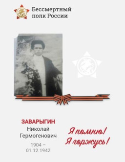 Заварцева Александра Захаровна с. Посоп, ныне часть Октябрьского района г. Саранска Республики Мордовия 1924 - 2005 Заварыгин Николай Гермогенович 1904 - 1942 Заварыгин Николай Гермогенович 1904 - 1942 Заварыкин Алексей Капитонович Заварыкин Василий Яковлевич 1917 Заварыкин Григорий Михайлович Заварыкин Данила Максимович 1909 - 1984 Заварыкин Кирилл Семенович Липецкая область, Задонский район, село Ново-Воскресеновка 1913 - 1995 Заварыкин Михаил Иванович Заварыкин Павел Васильевич 1920 - 1989 Заварыкин Павел Карпович 1908 - 1942 Заварыкин Павел Карпович 1908 - 1942 Заварыкин Пётр Александрович 1924 - 2006 Заварыкин Семён Сергеевич 1909 - 1943 Заварыкин Сергей Семенович 1921 Заварыкин Федор Васильевич 1918 - 1995 Заварыкина Анна Ивановна 1923 Заварыко Виктор Сергеевич 1926 - 1974 Завацкая (Гришунова) Наталья Платоновна 1924 - 1991 Завацкий Игнатий Николаевич Д. Александровка, Колосовский район 1914 - 1977