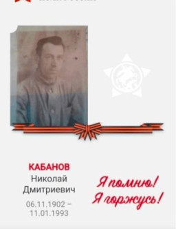 Кабанов Николай Владимирович 1925 - 1974 Кабанов Николай Данилович 1912 - 1993 Кабанов Николай Дмитриевич 1919 - 1995 Кабанов Николай Дмитриевич 1902 - 1993 Кабанов Николай Ефимович деревня Заборье, Хиславичского района, Смоленской области 1927 Кабанов Николай Ефимович 1926 - 1990 Кабанов Николай Иванович 1926 - 1992 Кабанов Николай Иванович 1925 - 2005 Кабанов Николай Михайлович 1925 - 1986 Кабанов Николай Николаевич 1919 - 1971 Кабанов Николай Прокопьевич д.Песниха , Микрихинского с/с, Ветлужского р-на, Горьковской области 1906 - 1941 Кабанов Николай Семенович Кабанов Николай Семенович 1919 - 2000 Кабанов Николай Семёнович 1919 - 2000 Кабанов Николай Сергеевич 1918 Кабанов Николай Степанович 1901 - 1941 Кабанов Николай Филипович 1923 - 1996 Кабанов Николай Филиппович с. Алексеевка 1923 - 1996 Кабанов Николай Финогентович село Елатомка, Оренбургской области, Бугурусланского района 1924 - 2007 Кабанов Николай Финогентович 1924 - 2007