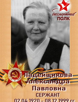 Ладейщиков Павел Гаврилович 1916 Ладейщикова Александра Павловна 1920 - 1999 Ладейщикова Людмила Андреевна 1925 - 1991 Ладенков Василий Иванович 1924 - 1988 Ладик Александра Александровна 1930 - 2022 Ладик Аркадий Яковлевич 1924 - 1978 Ладик Борис Иванович 1909 - 1986 Ладик Василий Емельянович 1910 - 1945 Ладик Дмитрий Миронович Сумская область с.Воздвиженское 1924 Ладик Елена Федосовна Брянская обл., Погарский район, село Суворово 1926 - 2012 Ладик Иван Петрович 1911 - 1944 Ладик Иван Степанович г. Харьков 1906 - 1945 Ладиков Алексей Иванович 1925 - 1968 Ладиков Ефим Демьянович 1926 - 1999 Ладиков Ефим Демьянович 1926 - 1999 Ладикова Мария Никитична 1920 - 2006 Ладилов Борис Павлович г.Семенов Горьковской области 1921 Ладилов Виктор Павлович 1914 - 1992 Ладилов Капитон Фёдорович Горьковская область, Борский район, деревня Дрюково 1904 - 1944 Ладилова Вера Сергеевна УССР Полтавская область деревня Засуля 1931 - 2019