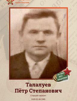 Талалгаева (Сухарева) Анна Михайловна 1928 - 2007 Талаленков Александр Петрович 1910 - 1981 Талалёнков Иван Петрович Талалёнков Павел Иванович Талалин Александр Ильич село Петрово, Голицинский район, Пензинской области 1927 - 1982 Талалин Илья Николаевич Пензенская область, Голицинский район, село Петрово 1894 - 1942 Талалин Илья Николаевич Талалин Леонид Васильевич 1903 - 1964 Талалин Леонид Васильевич 1903 - 1964 Талалихин Виктор Васильевич 1918 - 1941 Талалихин Виктор Васильевич Тепловка 1918 - 1941 Талалихин Павел Александрович с. Тепловка 1910 - 1991 Талалов Иван Васильевич ст. Ивановка, Баландинский район Саратовской области 1907 - 1942 Талалуев Василий Ефимович 1922 - 1994 Талалуев Георгий Филиппович 1921 - 2000 Талалуев Михаил Васильеввич 1911 - 1943 Талалуев Пётр Степанович Красноярский край, Партизанский р-н, д. Асафьевка 1920 - 1995 Таламанов Михаил Николаевич 1913 - 1945 Таламанов Павел Григорьевич 1913 Талан Алексей Александрович Российская Империя, Александровская губерния (Запорожская обл.), Бердянский уезд (затем район) 1910 - 1996