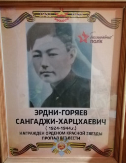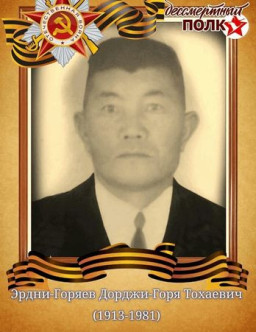Эрдни-Горяев Дорджи-Горя Тохаевич 1913 - 1981 Эрдни-Горяев Манджи Эрдни-Горяевич 1923 - 2016 Эрдни-Горяев Сангаджи Харцхаевич 1924 - 1944 Эрднигоряев Годжа Аширмудович с.Оленчев Калмыцкой АССР 1910 Эрдниев Александр Наранович с.Дальчин Долбанского района Калмыцкой АССР 1923 Эрдниев Басанг Буляевич 1927 - 2014 Эрдниев Бембя Боршкаевич 1923 Эрдниев Бембя Боршкаевич Эрдниев Борис Урусович 1912 - 1989 Эрдниев Борис Урусович 1912 - 1989 Эрдниев Заксен Коняевич поселок Ачинеры Республика Калмыкия 1923 - 1998 Эрдниев Пюрвя Мучкаевич урочище Хуцын-Толга, Ики-Бухусовской волости, Малодербетовского аймака, Калмыцкой области 1921 - 2019 Эрдниев Сангаджи Алексеевич с. Дамбур Долбанского района КАССР. 1922 - 2013 Эрдниев Урюбджур Эрдниевич село Партизанское, Партизанского района, Калмыцкой АССР 1910 - 1999 Эрдынеев Гомбожап Жамбалович село Телемба, Еравнинский район, республика Бурятия 1917 - 2007 Эрдынеев Даба-Самбу 1921 - 1998 Эрдынеев Дамбо Очирович Бурят-Монгольская АССР, Курумканский р-н, Аргада улус 1914 - 1997 Эрдынеев Тугут Ринчинович 1916 - 1989 Эрдынеев Ширип-нимбу Эрдынеевич Бурят-Монгольская АССР 1913 Эрдынеева Мария Тогмитовна Укыр-Челон Джидинского района Бурятской АССР 1923 - 1996