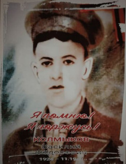 Колмогорцев Иван Григорьевич курганская обл.д.Тюшняково 1926 - 1980 Колмогорцев Иван Петрович Город Челябинск Деревня Казанцево 1926 - 1997 Колмогорцев Михаил Алексеевич 1907 - 1976 Колмогорцев Павел Алексеевич 1911 - 1965 Колмогорцева( Мотырева) Зинаида Михайловна 1923 - 2009 Колмурзин Миндыгалей Сулейманович Уйский район Челябинская область 1916 - 1998 Колмыгин Василий Николаевич 1906 - 1943 Колмык Андрей Иванович 1910 - 1942 Колмык Григорий Евсеевич с. Камыши 1925 - 2018 Колмык Юрий Афанасьевич 1925 - 1999 Колмыков Александр Борисович 1925 - 1973 Колмыков Алексей Федорович с. Атманов Угол Сосновского района Тамбовской области 1912 - 1986 Колмыков Василий Александрович 1923 - 1967 Колмыков Василий Федорович 1919 - 1999 Колмыков Василий Федорович 1924 - 1943 Колмыков Василий Федорович 1919 - 1999 Колмыков Василий Филиппович 1907 - 1986 Колмыков Виктор Васильевич 1926 - 2000 Колмыков Владимир Иванович 1912 - 1993 Колмыков Григорий Иванович 1916 - 1992
