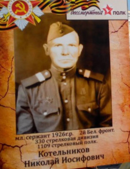 Котельников Михаил Никифорович село Еланыш Салаватского района Башкирской АССР 1914 - 1980 Котельников Михаил Осипович Вологодская губерния Никольский уезд д. Волгарица 1897 - 1970 Котельников Михаил Федорович Вологодская губерния Никольский уезд д. Стрельская 1906 Котельников Михаил Фёдорович 1923 - 1943 Котельников Никита Михайлович 1908 - 1941 Котельников Николаевич Николаевич Котельников Николай Александрович 1912 - 1975 Котельников Николай Александрович Кировская область Опаринский район Шадринский сельсовет д.Стрельская 1920 Котельников Николай Александрович Котельников Николай Алексеевич 1912 - 1976 Котельников Николай Алексеевич 1918 - 2012 Котельников Николай Васильевич Кировская область Опаринский район 1924 Котельников Николай Гаврилович Кировская область Опаринский район Шадринский сельсовет д.Стрельская 1923 Котельников Николай Ефимович 1911 - 2009 Котельников Николай Ефимович Село Рузаевка ,Пензенской области 1911 - 2008 Котельников Николай Иванович д.Кадниково, Сысертский р-н, Свердловская обл. 1925 Котельников Николай Иванович Вологодская губерния Никольский уезд д.Стрельская 1909 Котельников Николай Иванович 1918 - 1997 Котельников Николай Иосифович 1926 - 1996 Котельников Николай Матвеевич 1925 - 1994
