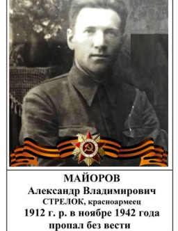 Майорко Алексей Иванович 1918 - 1997 Майорников Дмитрий Егорович с. Грибоедово Орловской области 1915 - 1996 Майорников Николай Петрович с. Долгуша Долгоруковский район Орловская оласть 1924 - 1988 Майорников Николай Петрович с.Долгуша 1924 - 1988 Майорников Павел Федорович Орловская область., Долгоруковский район,Петропетровский с/с 1902 - 1943 Майоров Аким Яковлевич Майоров Александр Александрович 1924 - 1987 Майоров Александр Алексеевич 1915 - 1943 Майоров Александр Алексеевич Сергиев Посад 1922 - 1995 Майоров Александр Андреевич 1921 - 1980 Майоров Александр Андреянович 1914 - 1982 Майоров Александр Андрианович 1914 - 1980 Майоров Александр Васильевич 1914 - 1983 Майоров Александр Владимирович 1912 - 1942 Майоров Александр Ефимович 1926 - 1994 Майоров Александр Иванович 1919 - 1984 Майоров Александр Иванович дер. Талашманиха, Бабаевского р, Вологодской обл. 1923 - 2012 Майоров Александр Иванович 1923 - 2012 Майоров Александр Ильич 1917 - 2000 Майоров Александр Максимович 1902 - 1942