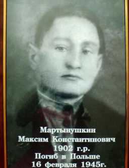 Мартынович Татьяна Филипповна 1923 - 2011 Мартыновская Анна Кирилловна мартыновский герман леонтьевич 1915 - 1997 Мартыновский Григорий Викторович 1926 - 2006 Мартыновский Иван Викторович 1911 Мартыновский Иосиф Федорович Мартыновских Анатолий Николаевич 1925 - 1998 Мартыновченко Иван Михайлович 1918 - 1984 Мартыновченко Элиза Исааковна дер. Скворицы Ленинградская обл. 1921 - 2007 Мартынушкин Иван Степанович село Пощупово Рязанской губернии Мартынушкин Максим Константинович 1902 - 1945 Мартынцев Николай Захарович 1917 - 1983 Мартынцев Петр Александрович д. Дружно, Дмитровский район, Курской области 1906 - 1942 Мартынцева Александра Даниловна 1920 - 2015 Мартынцов Павел Илларионович Новосибирская область, Татарский район, д. Новотроицкое 1922 Мартынчук Валентин Александрович 1926 - 1995 Мартынчук Николай Александрович 1921 - 1996 Мартынчук Николай Трофимович село Мыслово Староконстантиновского уезда Волынской губернии 1917 - 1943 Мартынчук Николай Трофимович Село Мыслово Староконстантиновского уезда Волынской губернии 1917 - 1943 Мартынчук Сергей Антонович