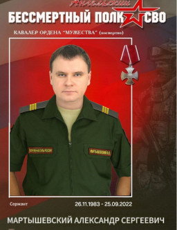Мартынюк Ольга Яковлевна 1926 - 2010 Мартынюк Павел Степанович 1910 - 1995 Мартынюк Петр Григорьевич 1918 - 1995 Мартынюк Петр Ефимович с. Баглайки, Красиловский р-н, Каменец-Подольской обл., Украинская ССР 1922 Мартынюк Роман Иванович 1913 - 2001 Мартынюк Роман Иванович Украинская ССР Киевская обл. Маньковский р-н с. Соколовка 1914 - 2001 Мартынюк Ульян Антонович 1904 - 1987 Мартынюк Федор Трофимович Мартысюк Александр Евдокимович 1924 - 2014 Мартысюк Анастасия Матвеевна 1915 - 2004 Мартысюк Михаил Никитич 1929 - 2001 Мартысюк Михаил Никитич Беларусь, Брестская обл.,Камянецкий р-н,д. Дмитровичи 1926 - 2001 Мартыш Григорий Викторович Мартышев Василий Николаевич 1911 - 2002 Мартышев Дмитрий Васиьевич 1896 - 1951 Мартышев Николай Александрович 1913 - 1956 Мартышев Николай Александрович 1913 - 1956 Мартышев Николай Петрович 1925 - 1959 Мартышёв Харитон Васильевич 1898 - 1978 Мартышевский Александр Сергеевич Краснодарский край, г.Горячий Ключ 1983 - 2022
