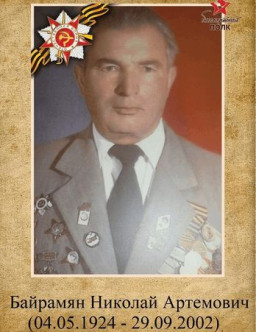 Байрамуков Ибрагим Джашауович 1904 - 1945 Байрамуков Исмаил Токмакович 1917 Байрамуков Магомет Сарбиевич Эльтаркач Байрамуков Мухтар Хамзатович 1916 - 1996 Байрамуков Осман Хасанович а. Кызыл-Кала 1919 Байрамуков Сулемен Исмаилович 1923 - 2001 Байрамуков Шагабан Джашауович 1919 - 1942 Байрамуков Юнус Сарбиевич Эльтаркач Байрамуков Якуб Асанович 1920 - 1950 Байрамян Николай Артемович 1924 - 2002 Байрамян Николай Артемович 1924 - 2002 Байрачная Валентина Петровна 1929 - 2008 Байрачная Валентина Петровна Харьковская область, Украина 1929 - 2008 Байрачный Георгий Владимирович п. Дмитриевский Алтайский край 1913 Байрачный Иван Федорович 1904 - 1947 Байраш Александр Фадеевич Бобруйская обл.Красно-Слободский район дер. Танежицы 1903 - 1944 Байрашев Виниямин Филиппович 1925 - 1974 Байрашев Сайран Байрашевич 1910 - 1945 Байрашевский Вилли Якубович 1924 - 2002 Байрушин Михаил Александрович 1917 - 1998