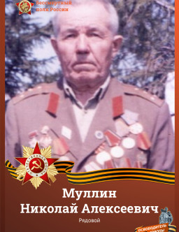 Муллиева Анна Ивановна 1911 - 1987 Муллин Алексей Иванович 1919 - 1982 Муллин Валентин Владимирович 1926 - 2002 Муллин Василий Григорьевич 1913 - 1941 Муллин Константин Иванович с. Андреевка Бузулукского уезда Самарской губернии 1906 - 1986 Муллин Кузьма Николаевич 1918 - 1998 Муллин Михаил Николаевич 1926 - 1981 Муллин Михаил Николаевич 1926 - 1981 Муллин Николай Алексеевич РТ Дрожжановский район с. Хорновар - Шигали Муллин Николай Васильевич 1919 - 1978 Муллин Пётр Семёнович 1915 Муллин Сергей Григорьевич 1922 - 1963 Муллин Степан Лукич 1910 - 1995 Муллин Хамит Зайдуллович 1913 - 1942 Муллин Хамит Зайдуллович (Загидуллович) с.Лабитово, Ульяновской области, Мелекесский район 1936 - 1942 Муллина Анастасия Серафимовна 1924 - 1981 Муллина Мария Алексеевна 1921 - 1989 Муллов Василий Ефимович 1918 - 1996 Мулляминов Абдулмукмин Абдурахманович 1920 - 1995 Мулляминов Абдулмукмин Абдурахманович 1920 - 1995