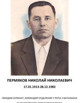Пермяков Михаил Николаевич 1902 - 1989 Пермяков Михаил Николаевич 1901 - 1942 Пермяков Михаил Николаевич 1909 - 1990 Пермяков Михаил Павлович 1915 Пермяков Михаил Петрович Омская область, Большереченский район, с. Осихино Пермяков Михаил Сергеевич Татарская АССР, р.п. Лаишево 1919 - 2001 Пермяков Нестор Иванович 1925 - 1992 Пермяков Николай 1933 - 2008 Пермяков Николай Васильевич 1907 - 1987 Пермяков Николай Григорьевич 1913 - 1941 Пермяков Николай Иванович 1924 - 2010 Пермяков Николай Иванович 1902 - 1942 Пермяков Николай Иванович 1902 - 1942 Пермяков Николай Константинович д. Сорокино, Омутинский район, Тюменской области 1924 - 1969 Пермяков Николай Михайлович с. Куваши. Златоустовского р-она. Челяб. обл. 1909 - 1943 Пермяков Николай Николаевич 1891 - 1955 Пермяков Николай Николаевич 1913 - 1983 Пермяков Николай Павлович 1902 - 1942 Пермяков Николай Романович 1918 - 2001 Пермяков Николай Романович Россия, Красноярский край, село Агинское 1918 - 2001