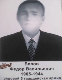 Белов Федор Александрович 1900 - 1945 Белов Федор Александрович 1910 - 1965 Белов Фёдор Александрович г. Ярославль 1910 - 1944 Белов Федор Алексеевич с.Колояр Саратовская обл 1912 Белов Федор Алексеевич С. Колояр Черкасского района Саратовской области 1912 - 1943 Белов Фёдор Афанасьевич 1924 - 2011 Белов Федор Васильевич 1905 - 1944 Белов Федор Васильевич 1916 - 1941 Белов Федор Гаврилович 1906 - 1943 Белов Федор Егорович 1899 - 1943 Белов Федор Егорович 1903 - 1942 Белов Федор Иванович 1904 - 1944 Белов Фёдор Иванович 1927 - 1975 Белов Федор Иванович Владимирская область, Суздальский район, д. Фомиха 1912 Белов Федор Иванович 1925 - 1992 Белов Федор Ильич 1924 - 2004 Белов Федор Ипатович деревня Ишбулатово Уфимской губернии 1908 - 1943 Белов Федор Леонович д.Кулотино,Маревского района,Новгородской области Белов Фёдор Михайлович Белов Федор Михайлович Ярославская область Рыбинский район д. Дымовское 1923 - 1944