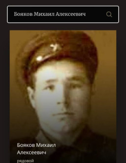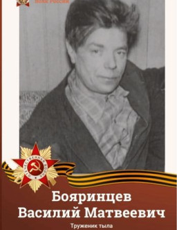 Бояринова Анна Даниловна 1918 - 1993 Бояринова Зинаида Палладиевна 1908 - 1983 Бояринова Неонила Евгеньевна 1919 - 2014 Бояринова Татьяна Михайловна Село Белые Колодези Озерского района Московской области 1924 - 2001 Бояринцев Александр Ильич 1916 - 2005 Бояринцев Александр Прокопьевич 1923 - 2002 Бояринцев Алексей Дмитриевич 1921 - 1994 Бояринцев Алексей Михайлович 1920 - 1994 Бояринцев Алексей Павлович Бояринцев Анатолий Георгиевич 1921 - 1989 Бояринцев Андрей Трофимович 1923 - 2000 Бояринцев Борис Матвеевич с. Верхняя Боярщина Кировской области 1925 - 1945 Бояринцев Борис Матвеевич 1925 - 1945 Бояринцев Василий Игнатьевич 1924 - 2004 Бояринцев Василий Игнатьевич Курская область 1924 - 2004 Бояринцев Василий Игнатьевич 1924 - 2004 Бояринцев Василий Матвеевич 1929 - 2006 Бояринцев Василий Прокопьевич Деревня Шишкари Халтуринского района Кировской области 1912 Бояринцев Василий Прокофьевич 1911 - 1991 Бояринцев Вениамин Афанасьевич 1923 - 1997