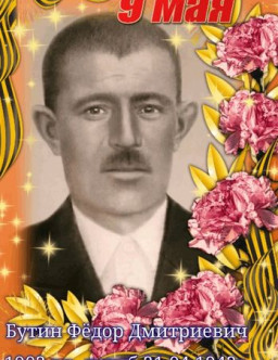 Бутин Николай Иванович 1918 - 2008 Бутин Николай Семёнович 1926 - 1995 Бутин Петр Иосифович 1914 - 1963 Бутин Тихон Степанович 1917 - 1981 Бутин Федор Андреевич 1923 - 2005 Бутин Федор Дмитриевич 1902 - 1942 Бутин Филипп Иннокентьевич 1899 - 1993 Бутин Яков Никифорович 1917 - 1993 Бутин Яков Николаевич с. Старый Олов Читинская область 1918 - 2001 Бутина Зинаида Павловна 1903 - 1993 Бутина Прасковья Ефимовна 1916 - 1995 Бутина Таисия Михайловна Город Скопин 1922 Бутина (Ануфриева) Анна Ивановна Ярославская область, село Михайловка 1921 - 2005 Бутинцева Александра Николаевна 1921 - 1999 Буткарев Петр Васильевич 1922 - 1991 Буткач Василий Иванович 1921 - 1984 Буткевич Александр Сидорович Ленинградская область, пос.имени Морозова 1926 - 1998 Буткевич Алексей Иосифович Краснодон 1922 Буткевич Андрей Максимович 1917 - 1978 Буткевич Виктор Никодимович Беларусь, Могилевская область, город Бобруйск 1924 - 1943