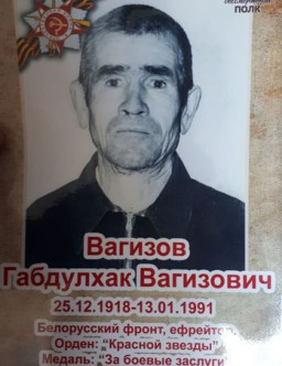 Вагапов(Ваганов) Закарья Мусабаевич 1918 - 2003 Вагжанова Мария Васильевна 1923 - 1991 Вагидов Гаджикадыр Вагидович село Куркент 1912 - 1988 Вагизов Абдул-Валей Вагизович Башкортостан д. Карпово 1906 Вагизов Габдулхак 1918 - 1991 Вагизов Габдулхак Вагизович Вагизов Гадыл Фаткулисламович Татарская АССР, Лениногорский район, п. Каркали 1918 - 1994 Вагизов Гали Ганиевич 1911 - 1968 Вагизов Ибрагим 1903 Вагизов Исмагил 1905 Вагизов Калямутдин Салахович 1906 Вагизов Минихамат (Хамат) Абдулгалимович деревня Султанаево Асановского сельсовета Кушнаренковского района Башкирской АССР. 1902 - 1942 Вагизов Муса 1918 - 1979 Вагизов Саетгали Абуталибович 1926 - 2006 Вагизов Саитгали Абуталибович 1926 - 2006 Вагизов Салихьян Габдурахманович Удмуртия 1913 - 1999 Вагизов Сафаутдин Салахович 1920 - 1965 Вагизов Сулейман 1914 - 1942 Вагизов Халяфутдин Газымович 1926 - 2014 Вагизьянов Галимьян Вагизьянович 1917 - 2005