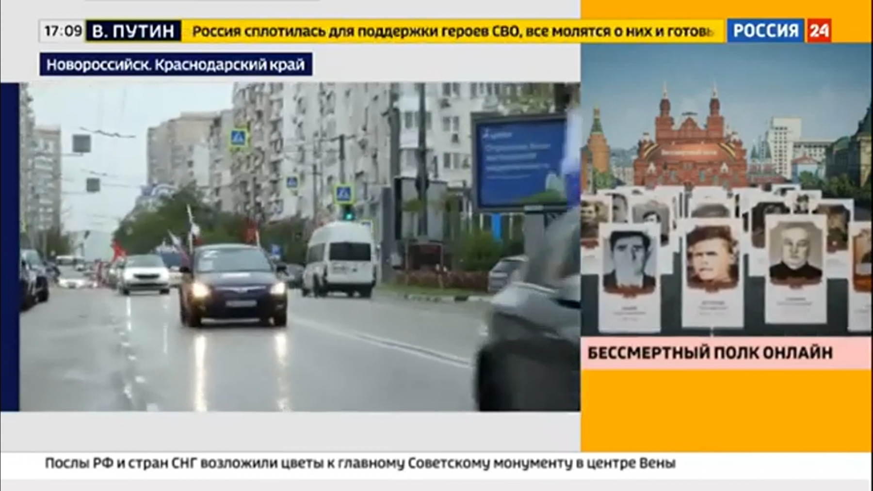 Кроме того, на телеканалах можно будет посмотреть трансляцию портретов ветеранов в формате второго экрана, врезанного в основную программу вещания. В этот раз они будут смотреть на нас, своих потомков, с городских светодиодных экранов и медиа-фасадов по всей России.