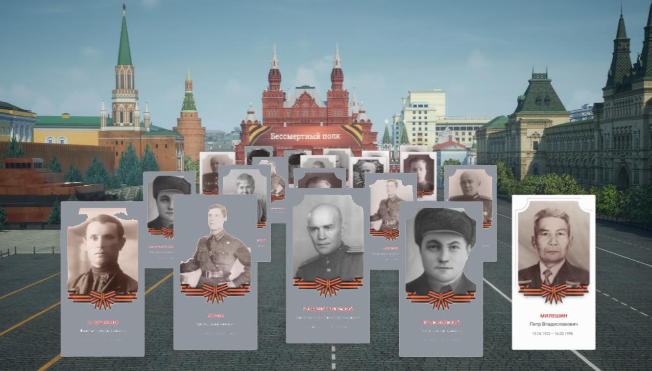 Портреты ветеранов будут постепенно приближаться к зрителю на фоне Красной площади. Каждый ряд будет состоять из 5 карточек героев.