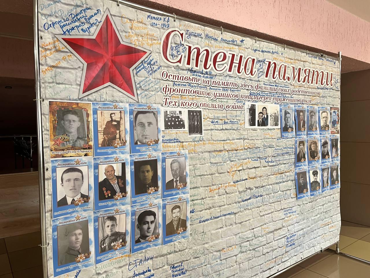 В учреждениях, на предприятиях в помещениях массового пребывания работников, а также в образовательных учреждениях предлагается установить «Стены памяти», на которые каждый работник, служащий, школьник или студент может прикрепить портрет своего ветерана в формате А5, изготовленный с помощью конструктора штендеров на сайте Бессмертного полка России, указав его ФИО и годы жизни https://www.polkrf.ru/shtender.