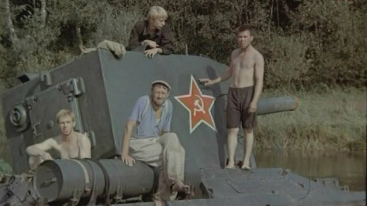 «Они вытащили танк под утро, когда черная земля начала сереть, а звезды – блекнуть, - писал в своей киноповести автор сценария Валерий Залотуха. - Кто-то лежал, скрючившись, на подводе. Кого-то глухо и безжалостно рвало. Под сосной скучились остальные. Грязные, измученные, жалкие. Теперь они видели, сколь велик и могуществен танк, и оттого робели, уважали его и, может быть, даже любили, а не ненавидели, как только что, когда тащили…