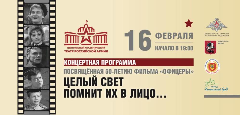 Юбилейное чествование фильма откроется концертной программой «Целый свет помнит их в лицо» в Центральном академическом театре Российской Армии, которая будет посвящена российским офицерам – от Российской Империи до сегодняшнего дня.