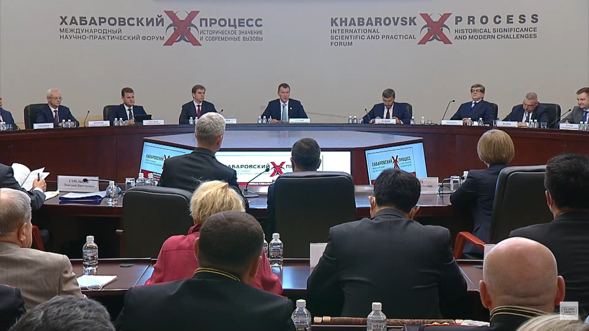 «Ваша представительная встреча имеет особое и, конечно, практическое звучание. Обсуждение событий тех лет основывается на фактах и архивных материалах. Такая честная, ответственная позиция очень важна для сохранения исторической памяти, для того, чтобы эффективно противодействовать попыткам исказить события Второй мировой войны и не допустить их повторения. Рассчитываю, что форум внесет весомый вклад в глубокое осмысление исторического наследия Хабаровского процесса и его значения для современности, а сделанные вами выводы будут востребованы в дальнейшей научно-исследовательской работе», - говорится в обращении к участникам форума Президента РФ Владимира Путина.