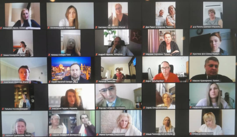 Заместитель председателя Всемирного Координационного Совета российских соотечественников Максим Крамаренко рассказал, как проходят мероприятия, посвященные «Году памяти и славы» в русскоязычной диаспоре. Виктория Самойлова представила проект акции «Свеча памяти», Кристина Бутусова предложила координаторам провести вместе с детьми акцию «Я рисую мелом», Анастасия Гордон представила Флешмоб «Голубь мира» благодаря которой, своего голубя можно сфотографировать и «отправить в полет» в интернет-пространство с пожеланием мира и хештегами #ГолубьМира #МирНаЗемле.