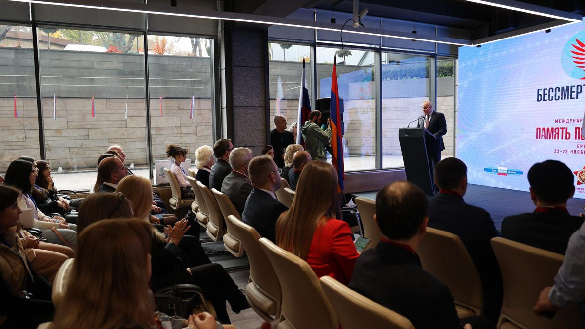 «Особенно важно то, что здесь бережно хранят память о нашем общем подвиге, чествуют героев-победителей, противостоят попыткам переписать историю. В этом плане мы едины, - отметил в своем выступлении на открытии форума Чрезвычайный и Полномочный Посол Российской Федерации в Республике Армения Сергей Копыркин. - Мы с вами видим, как сегодня Бессмертный полк стал одной из линий сопротивления атаке на наше общее прошлое, которое является частью той гибридной войны, которую ведет коллективный Запад против России. Тем важнее, что мы единым фронтом встаем на защиту исторической правды, против попыток фальсификации истории».