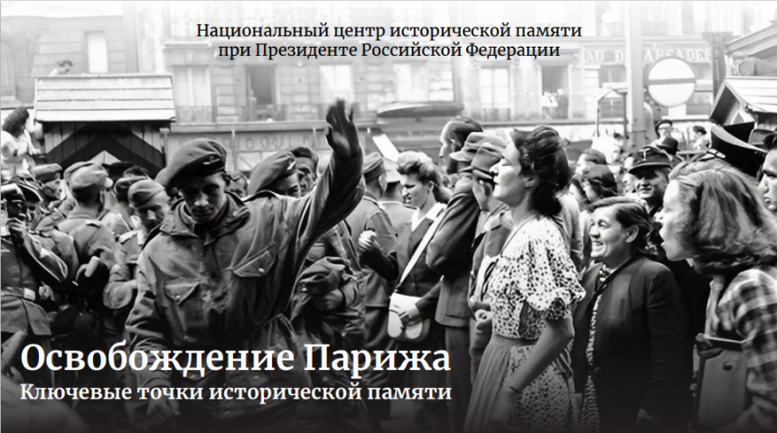 23 августа 2024 года Национальный центр исторической памяти при Президенте Российской Федерации в формате ВКС проведет методический семинар «Освобождение Парижа: ключевые точки исторической памяти». Эксперты Национального центра представят ключевые точки исторической памяти об освобождении Парижа и Франции от оккупации нацистов. К участию в семинаре приглашаются представители общественных организаций и объединений, учителя, педагоги, специалисты системы учреждений патриотического воспитания, учреждений культуры, органов государственной власти и местного самоуправления. У участников трансляции будет возможность задать вопросы экспертам Национального центра. Все представленные материалы семинара могут быть использованы в работе.