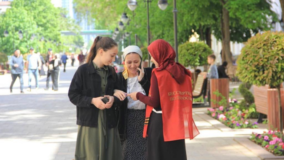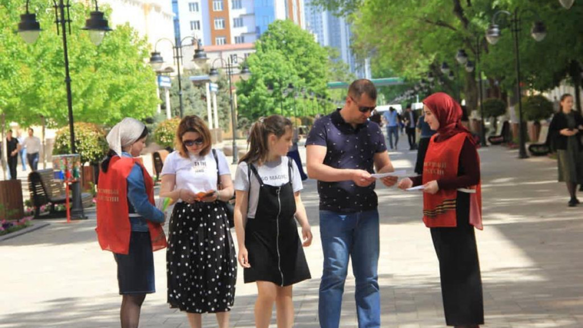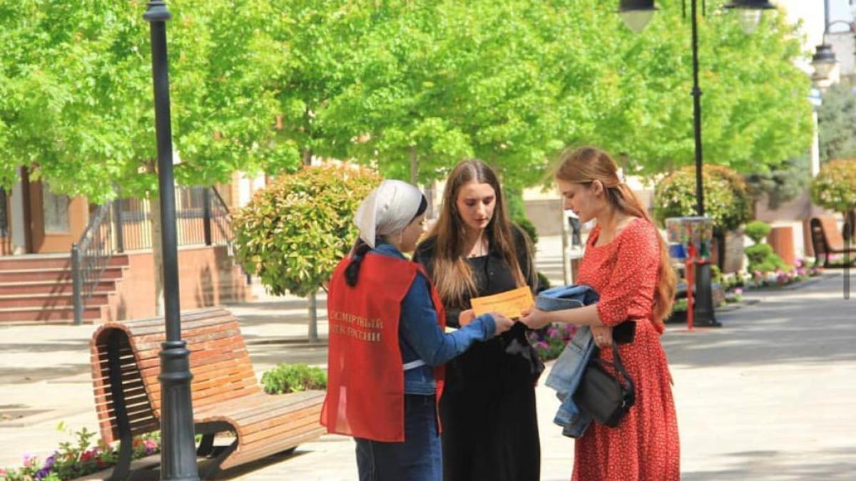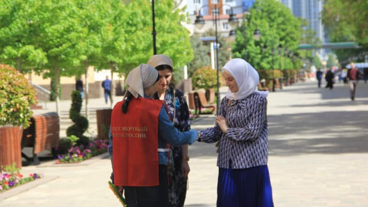 Волонтеры регионального отделения Бессмертного полка России в Чеченской Республике провели акцию ко Дню России «Люблю Россию». Они вручали горожанам информационные буклеты и тексты с гимном Российской Федерации.