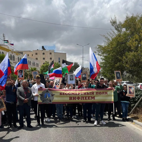 Бессмертный полк начинает свое победное шествие по планете. 6 мая сотни детей, внуков и правнуков Победителей с портретами своих родных и близких прошли по центру старинного Вифлеема в Палестине. Для участия в шествии люди приезжали семьями со всего Западного берега реки Иордан: из Дженнина, Наблуса, Хеврона и Рамаллаха – столицы Палестинской национальной администрации.
